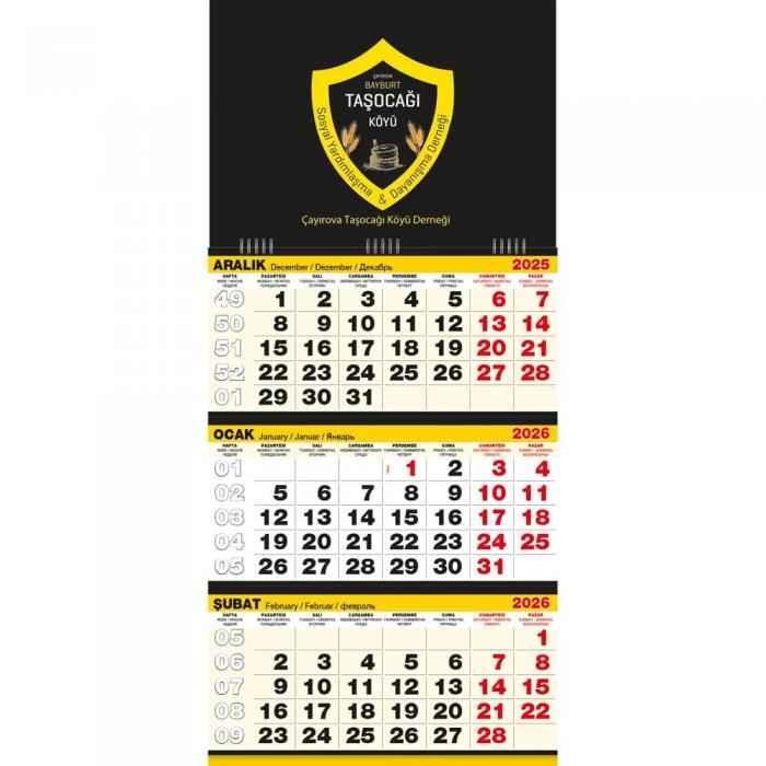 • Takvim Ebat: 33 x 73 cm